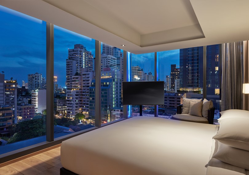 Hyatt Regency Bangkok Sukhumvit is 31-storey hotel located at Soi Sukhumvit 13 in the center of Sukhumvit area with the direct entrance to BTS Nana station. The hotel features a total of 273 modern rooms with full facilities and amenities such as a 24-hours fitness center, swimming pool, outdoor spaces and Regency Club Lounge to provide energizing experiences for guests visiting Bangkok, either for business or leisure.