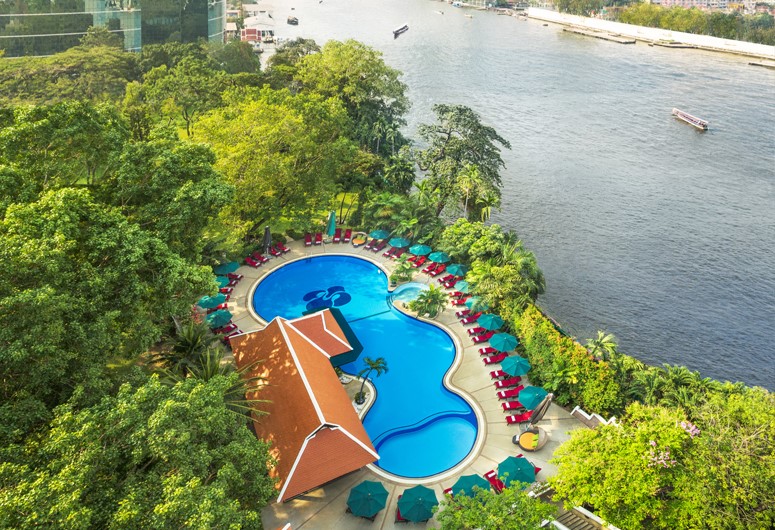 Royal Orchid Sheraton Hotel & Towers is a 5-star hotel situated riverside on the enchanting Chao Phraya River, on Charoen Krung Road, managed by the well-known multinational hotel company, Marriott International. All 726 of luxurious guest rooms and suites offer showcase sweeping, unobstructed riverfront views with Thai hospitality and international standard service. The hotel located in heart of Bangkok's business district with only 1.6 km from BTS Saphan Taksin station. Other hotel amenities include resort-style swimming pools, 24-hour fitness center, tennis courts and a complimentary shuttle boat to the Bangkok sky train and ICONSIAM shopping mall. The hotel also offers over 43,900 square feet of riverside venue space, which is perfect for conferences, weddings and other special events in Bangkok.