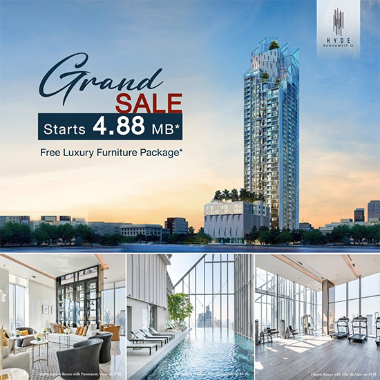 Hyde Sukhumvit 11 Project which has project value more than 4,000 million Baht consists of a 39-floor residential building with completed facilities and a 9-floor parking building with residential areas, commercial areas and recreation areas on the roof top. The project offers a variety of styles of condominium units, which include 476 residential units, consisting of studio, 1 bedroom, 2 bedrooms, 3 bedrooms, duplex loft, duplex penthouse and villa penthouse types with usable areas ranging from 27 square meters to 178 square meters including 2 commercial units. Presently, the proj ect can still recei ve i nterest from the hi gh-end target group, both Thai and forei gner conti nuall y.