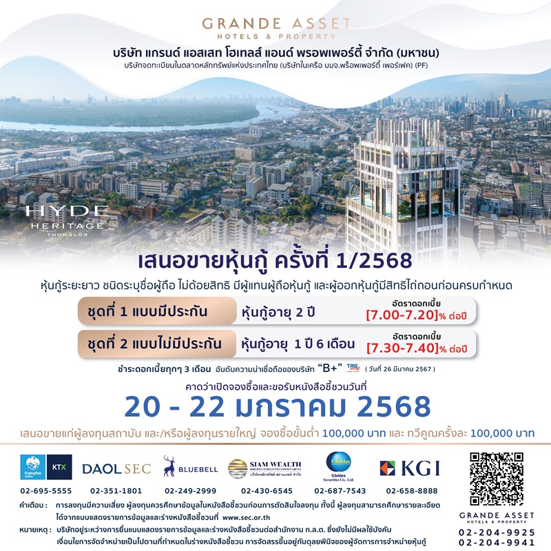 GRAND เสนอขายหุ้นกู้ ครั้งที่ 1/2568