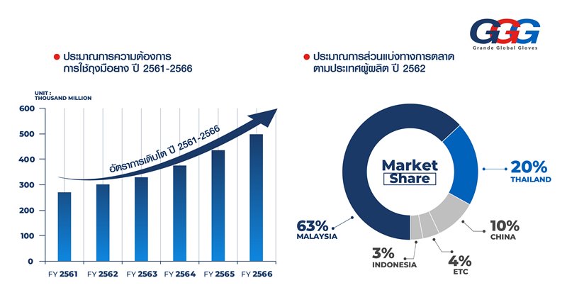 “จากข้อมูลขององค์การอนามัยโลก (WHO) ในช่วงปี 2553-2562 ความต้องการใช้ถุงมือยางของโลก มีอัตราเติบโตเฉลี่ย 8% ต่อปี โดยมีปัจจัยหนุนทั้งการขยายตัวของประชากรโลก ซึ่งมีการใช้ถุงมือยางทั้งในภาคอุตสาหกรรมและสาธารณสุข ในปี 2563 การแพร่ระบาดของโควิด-19 ส่งผลให้ความต้องการใช้ถุงมือยางของโลกพุ่งขึ้นสูงมาก เพื่อตอบโจทย์การใช้งานภายใต้วิถีชีวิตใหม่ ความต้องการใช้ถุงมือยางของโลกในปี 2563 จะมากกว่า 330,000 ล้านชิ้นต่อปี และคาดการณ์ว่าปี 2564 จนถึงปี 2566 จะเติบโตไปถึง 500,000 ล้านชิ้นต่อปี เป็นผลมาจากปัจจัยหลัก ได้แก่ การเติบโตของอุตสาหกรรมทางการแพทย์ และการเติบโตของผู้บริโภคทั่วโลกที่ให้ความสำคัญด้านสุขอนามัยอย่างมากในปัจจุบัน สะท้อนโอกาสของผู้ผลิตถุงมือยางในการเร่งส่งออกไปยังตลาดโลก”