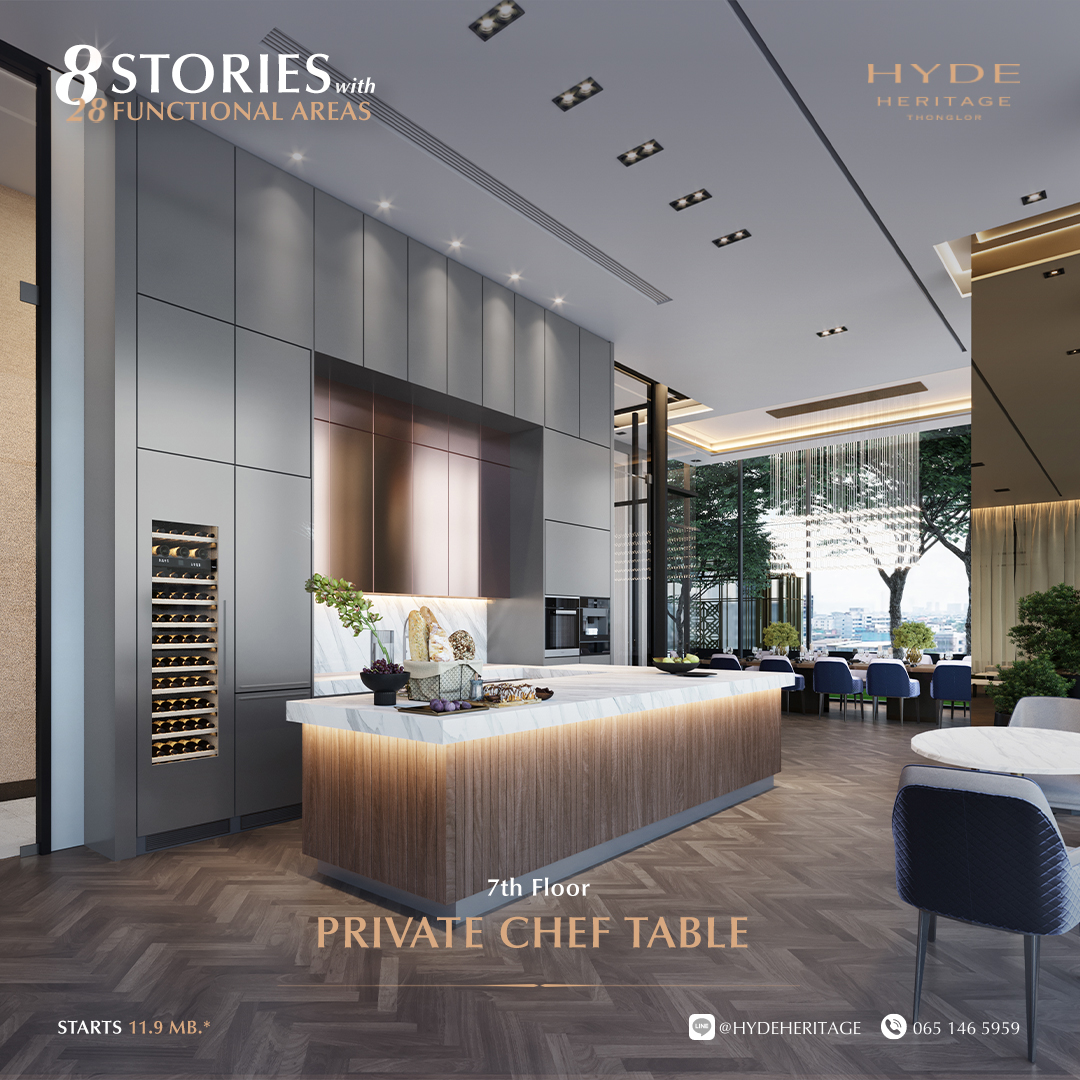 สัมผัสกับประสบการณ์สุดเอ็กคลูซีฟที่ Private Chef Table อีกหนึ่งส่วนกลางที่เป็นไฮไลท์ของโครงการ สามารถจองล่วงหน้าเพื่อใช้พื้นที่ในการจัดเลี้ยงแบบส่วนตัว นอกจากนี้ยังสามารถใช้บริการจัดหาเชฟชื่อดังมาประกอบอาหารให้ทานได้ถึงที่โดยมีอุปกรณ์ให้ครบครัน พร้อมใช้งาน ซึ่งก็เป็นอีกหนึ่งบริการ On-Demand Service by HYATT Regency Bangkok Sukhumvit